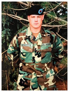 In 2006, MSG Knotts enlisted in the Regular Army and volunteered for an Airborne assignment. He re-classed to MOS 11B/Infantry, graduation from Airborne school, FT Benning, Georgia. He was then assigned as a squad leader with C Company (Reconnaissance, Targeting, Interdiction, and Acquisition troop), 73rd Cavalry Squadron, 82nd Airborne Division.