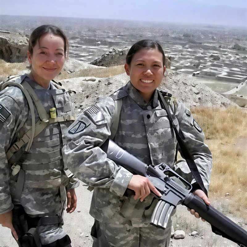 In 2006, during her first deployment with the 10th Mountain Division (Light Infantry), her vehicle was attacked by a suicide vehicle-borne improvised explosive device, resulting in a mild-traumatic brain injury and PTSD. Despite these challenges, she continued her service and deployed again in 2013 to Forward Operating Base Shank, known as "Rocket City," where she provided critical intelligence support under frequent rocket attacks.